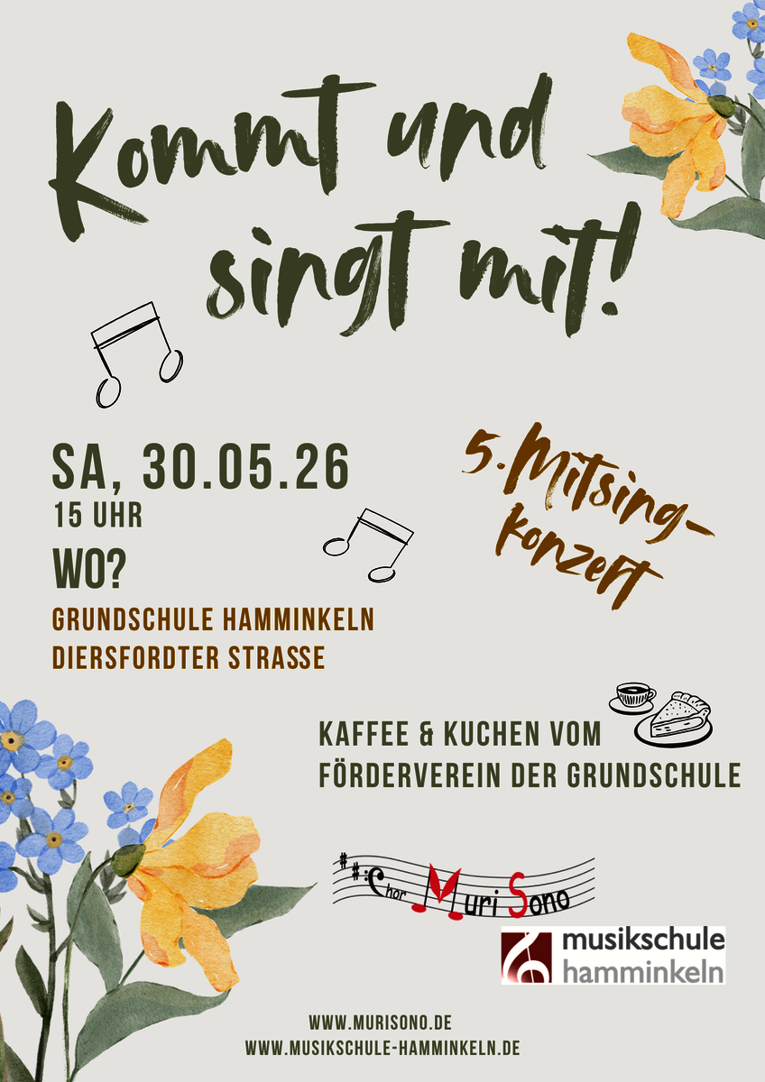 Nachdem das erste gemeinsame Singen in Hamminkeln vor drei Jahren so großen Anklang gefunden hat, freut sich der Chor nunmehr darauf, mit Jung und Alt wiederum einen sehr vergnüglichen Nachmittag zu verbringen.